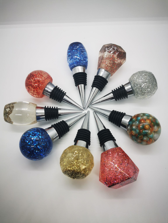 Bouchons au choix en résine époxy , avec insertion de paillettes, de coquillages, de perles, encre à alcool de 45g à 55g